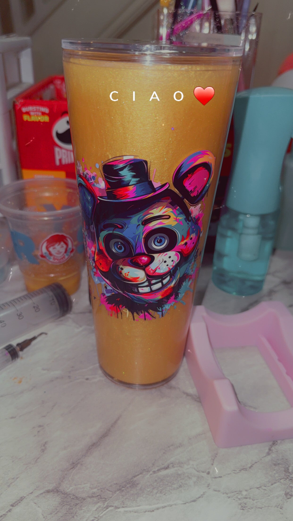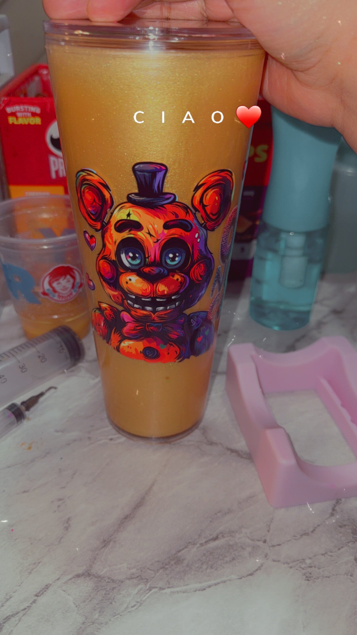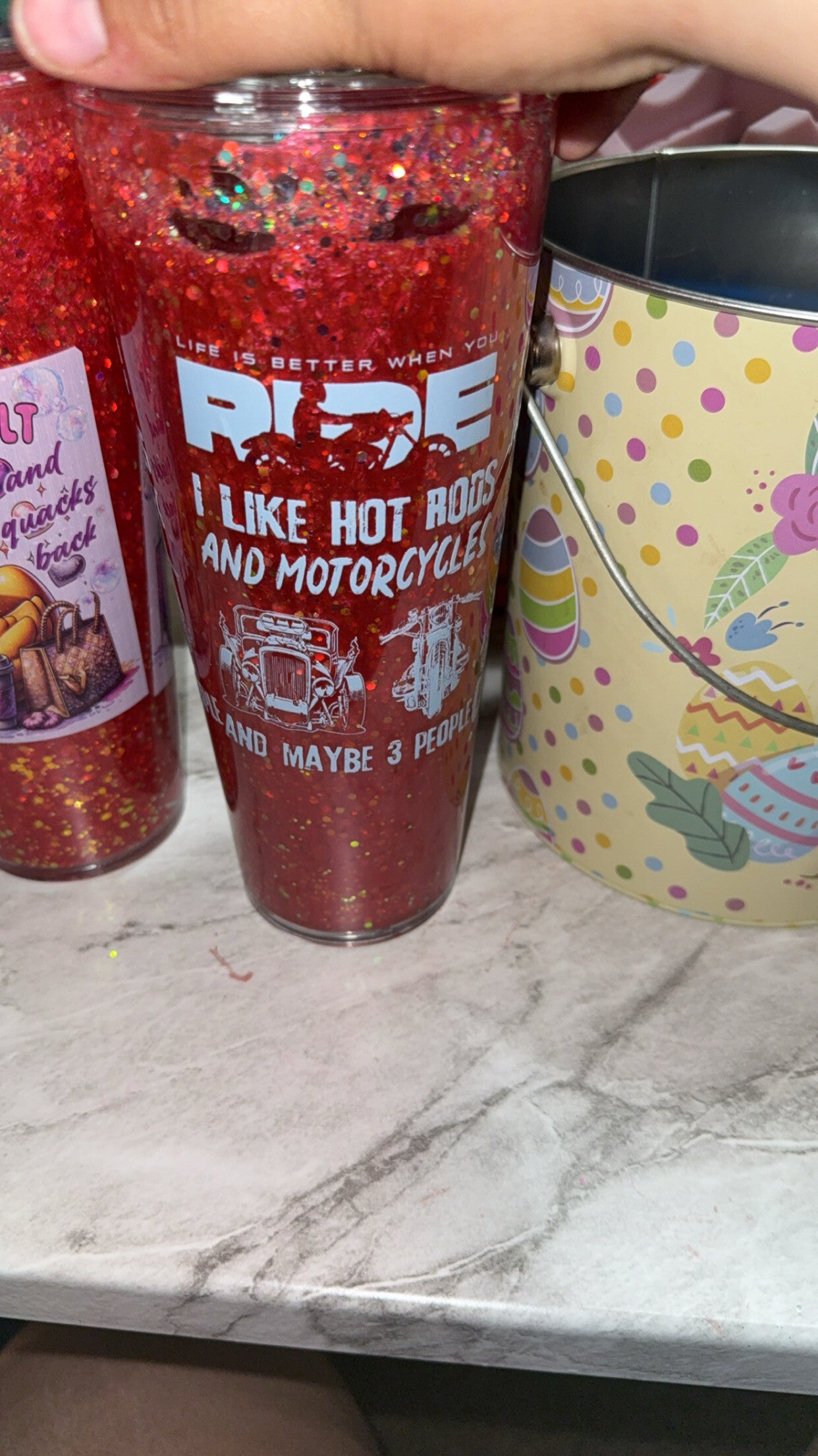 I make and sell snowglobe tumblers I can also make them have a lava drip I also put a design on baby bottles